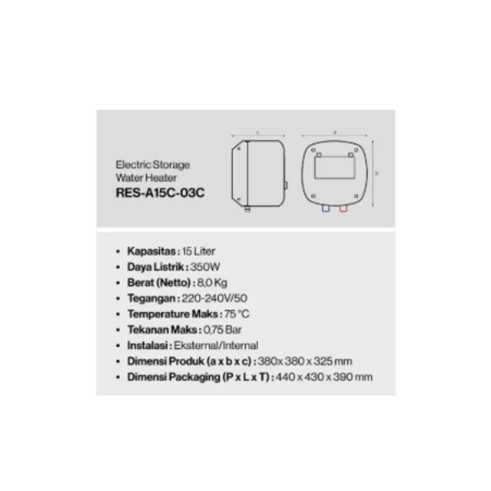 Nikmati relaksasi setelah beraktivitas seharian dengan mandi air hangat menggunakan Rinnai Water Heater RES-A15C-03C. Menggunakan material terbaik 310s Stainless Steel Heating Element yang tahan terhadap karat dan anti keropos. Rinnai Water Heater RES-A15C-03C telah dilengkapi pipa air dengan bahan anti bakteri yang menghasilkan ion AG+. Hal ini membantu mencegah pertumbuhan bakteri dalam pipa air, menghasilkan air yang lebih sehat, dan lebih murni untuk Anda dan keluarga. Selain itu, dilengkapi juga dengan Extra Super Sensitive ELCB 10mA yang dapat memutuskan aliran listrik secara otomatis ketika terjadi kebocoran listrik. RES-A15C-03C memiliki perlindungan kuat dari cipratan air hingga Level IPX4, sehingga Anda tidak perlu khawatir terkena cipratan air yang dapat membuat kerusakan. Dalam memberikan kualitas dan keamanan terbaik, percayakan pada Rinnai Water Heater RES-A15C-03C yang merupakan pilihan tepat untuk Anda.