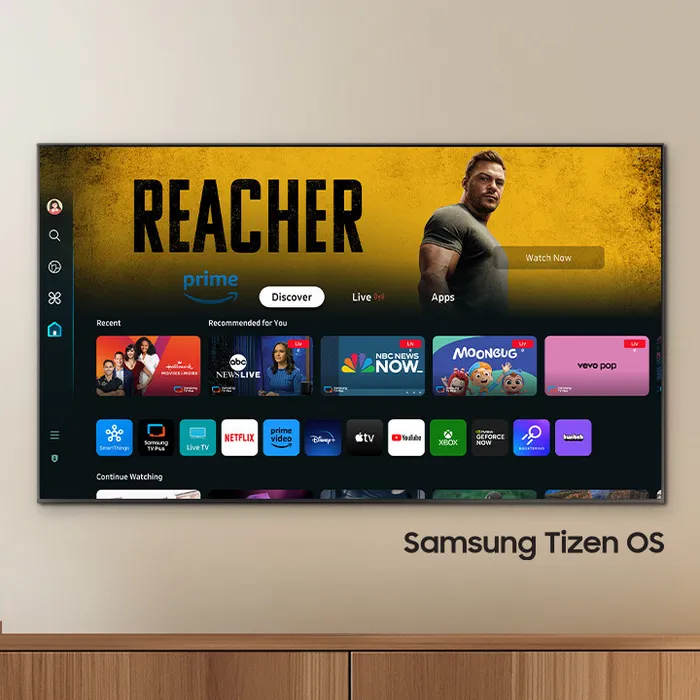 Maksimalkan TV Anda dengan aplikasi & layanan terbaru di Samsung Tizen OS. Nikmati saluran TV live gratis dan ribuan film dengan Samsung TV Plus, serta cloud gaming tanpa hambatan dengan Gaming Hub. Anda bahkan dapat mengelola aktivitas harian Anda dengan Daily+ dan mengontrol perangkat pintar dari TV dengan SmartThings.