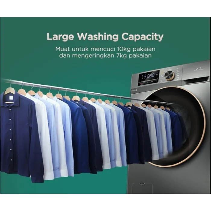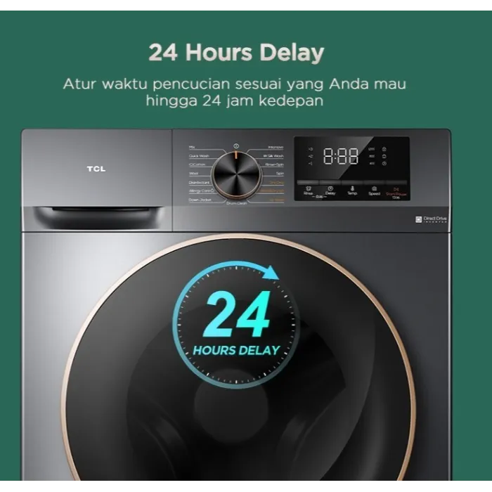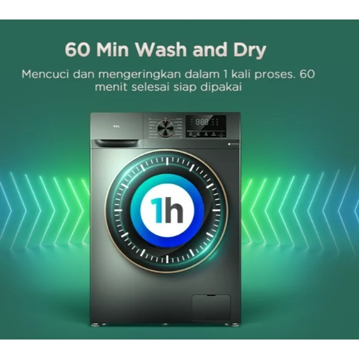 TCL Mesin Cuci Front Loading Washer Dryer 10.5 kg - 100% Kering - Direct Drive Motor - Heat Sterilization - Air Wash - Drum Clean - Pengeringan 7 kg (Model: Ecorora TWD105-C22DG)