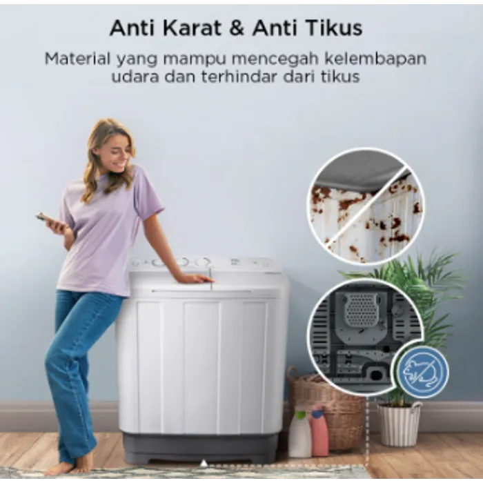 Kelengkapan: 1 unit mesin cuci, 1 manual book, 1 kartu garansi