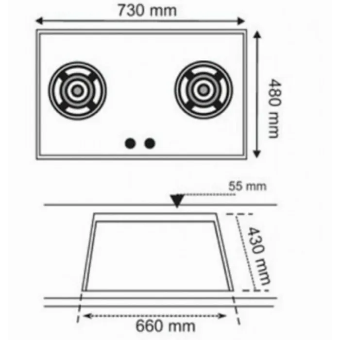 Dimensi Cut-out: 650 x 345 mm