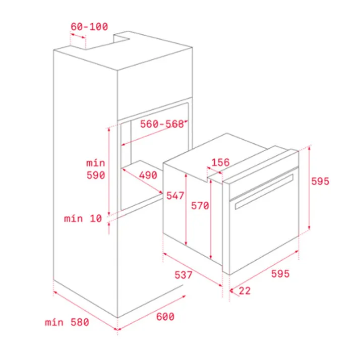 - Dimensions mm: 595 x 595 x 559