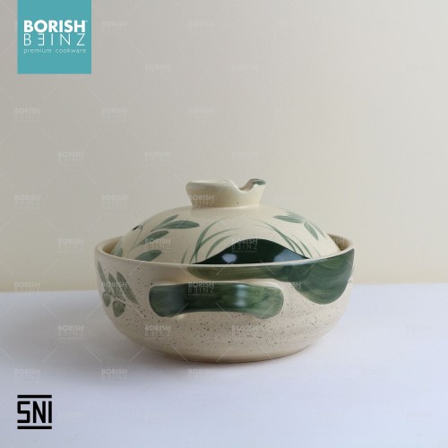 Spesifikasi Produk: 1. Berat: 2.187 grm 2. Kapasitas: 2.5 Liter 3. Tinggi: 9 cm 4. Lebar: 23.5 cm 5. Warna: Krem 6. Material Ceramic 7. Ukuran tinggi dengan lid 14.5 cm 8. Ukuran diameter dengan handle 31 cm - Microwave & Dishwasher safe!!! - Harga Include Free Packaging & Bubble Wrap!!! - Memenuhi SNI (Standard Negara Indonesia) - Jaminan packaging aman sampai tujuan Seluruh produk Borish Beinz sudah melalui proses QC dgn kondisi 99%+ mulus, dikarenakan produk ini melewati proses pembakaran dgn temperatur tinggi, sehingga bintik hitam, gelembung tidak dapat dihindari (tidak mengurangi fungsi).