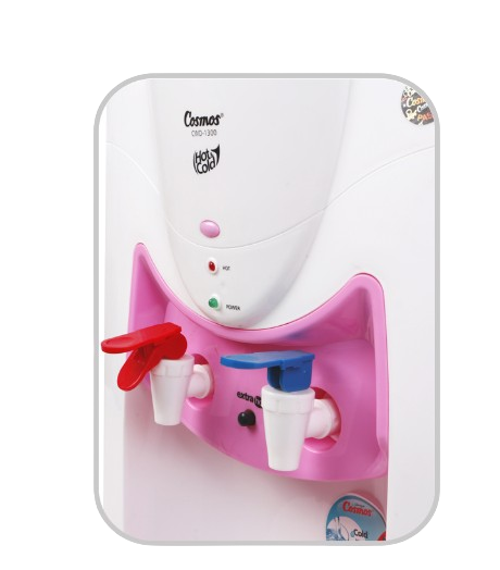 Water Dispenser Hot & Cold dari Cosmos dengan tangki berbahan stainless steel atau anti karat sehingga aman bagi kesehatan.