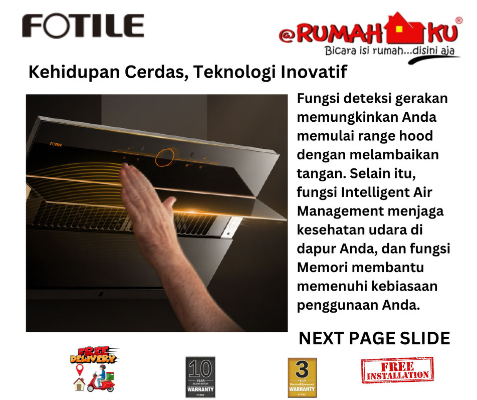 FOTILE Range Hood - JQG9009XFree Installation untuk JabodetabekFitur:Noise ReductionWave and touch function3 speed fan controlAuto TurboMemory functionDelay off function 2 minutesScreen lock function